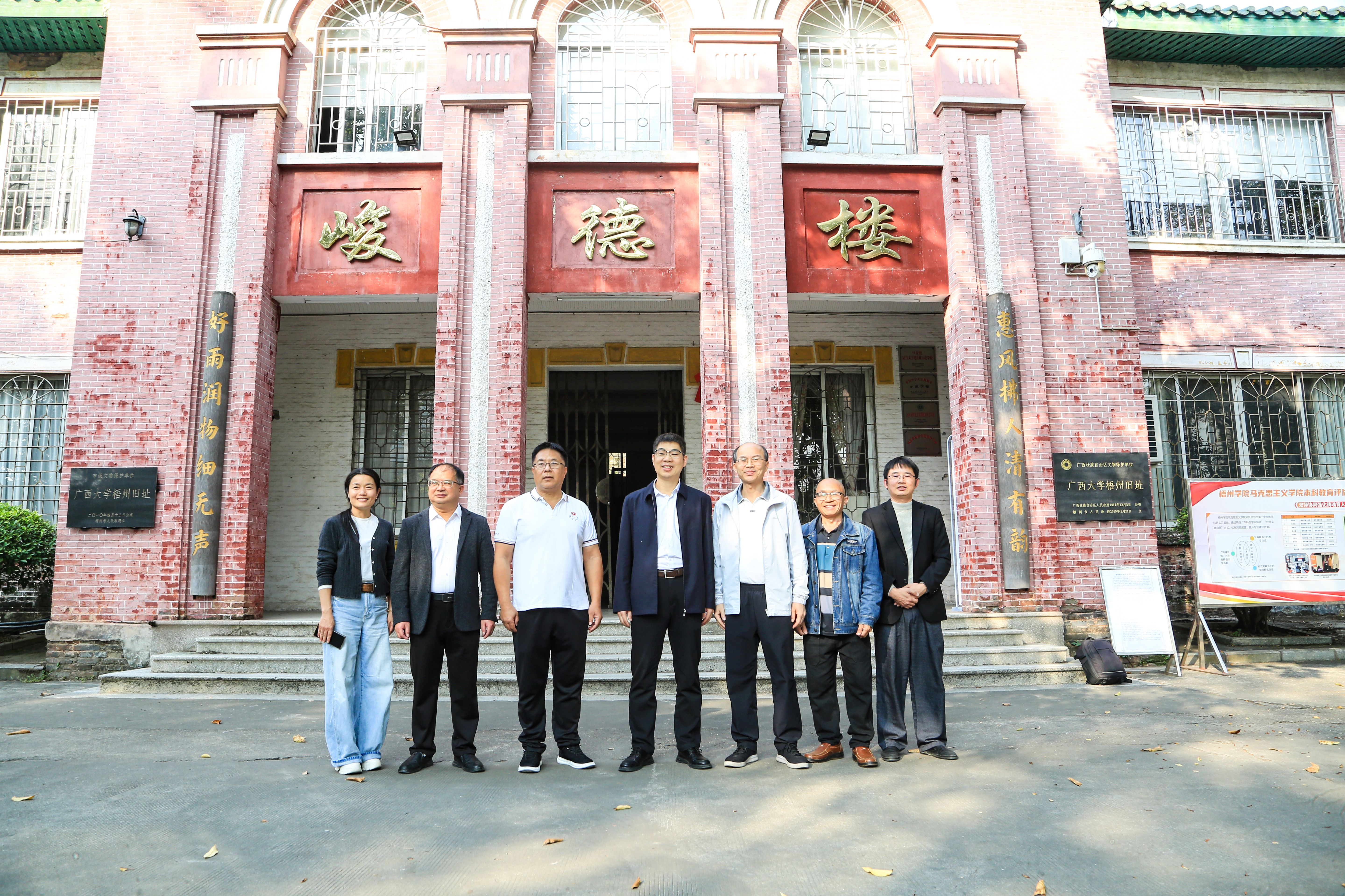 孙瑞一行参观了红楼、蝴蝶山等旧址,详细了解广西大学梧州老校园的历史脉络、建筑特色与保护现状,并就如何推进校园历史文化资源的整理、研究和宣传工作进行了交流探讨。